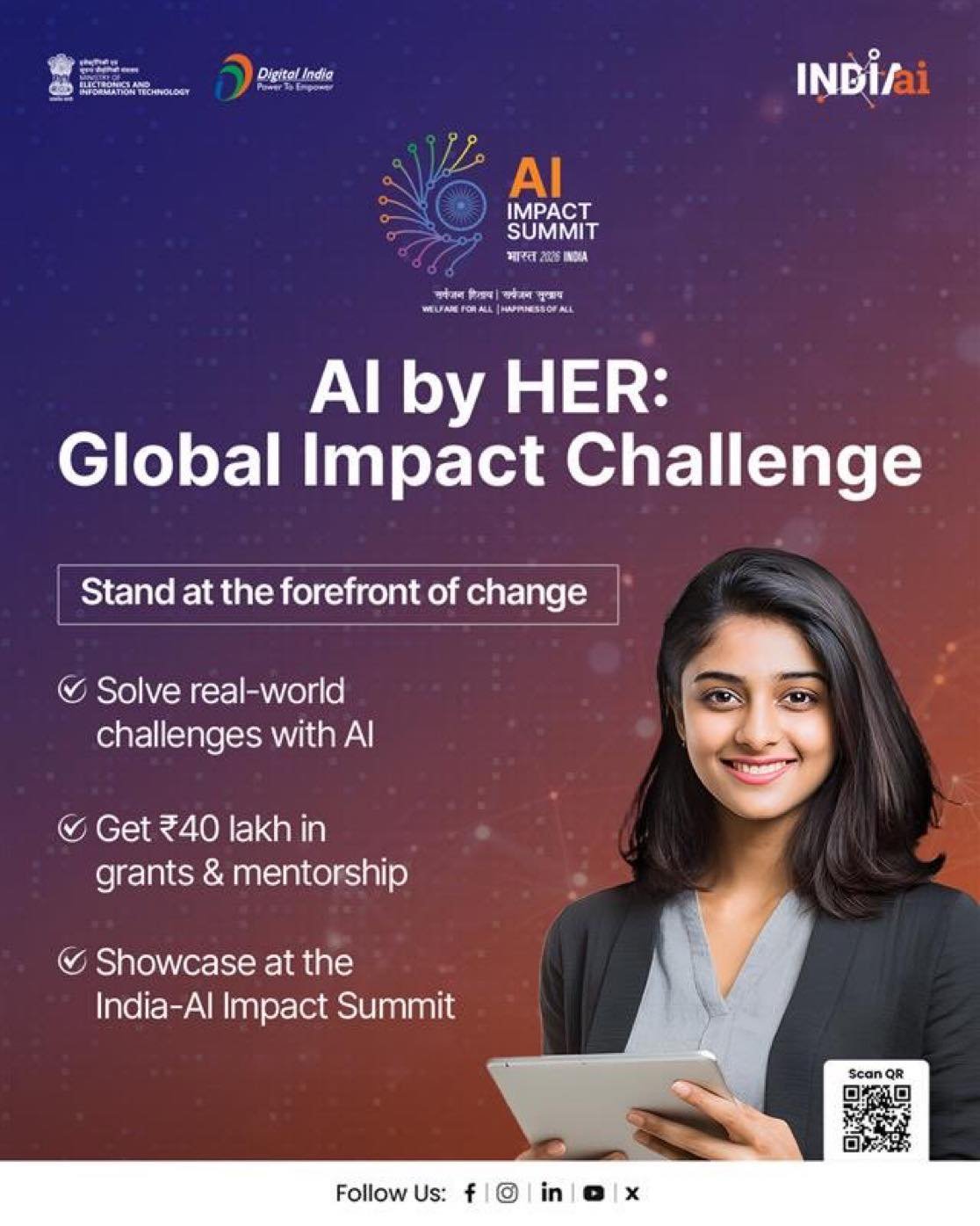 Applications are now open for the AI by HER: Global Impact Challenge, a flagship initiative under the India AI Impact Summit 2026 aimed at empowering women innovators worldwide.