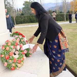 Ambassador Vani Rao presided over the Embassy’s tribute ceremony at the Commonwealth War Graves Cemetery in Florence, paying homage to the brave Indian soldiers who served in the Second World War – Italy Campaign.
