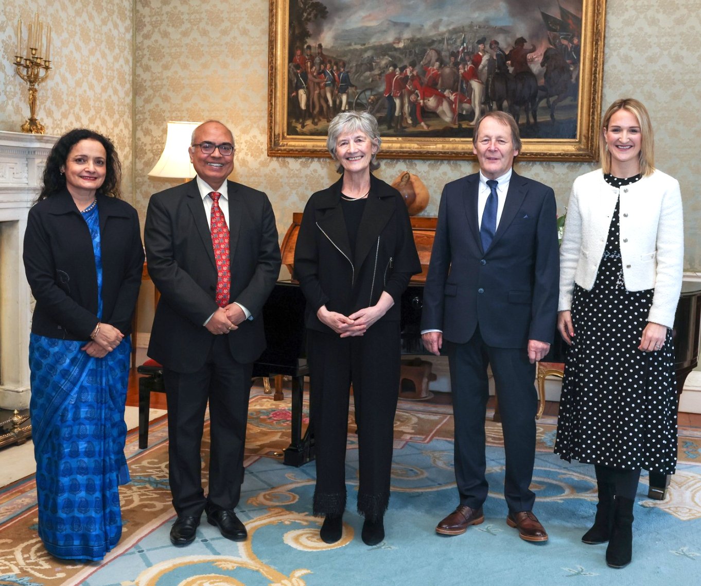 Ambassador of India to Ireland, H.E. Mr. Akhilesh Mishra, accompanied by Mrs. Reeti Mishra, was privileged to meet Uachtarán na hÉireann / President of Ireland, H.E. Ms. Catherine Connolly, and extend New Year greetings on behalf of the Hon’ble President of India 🇮🇳 and the 1.4 billion people of India.