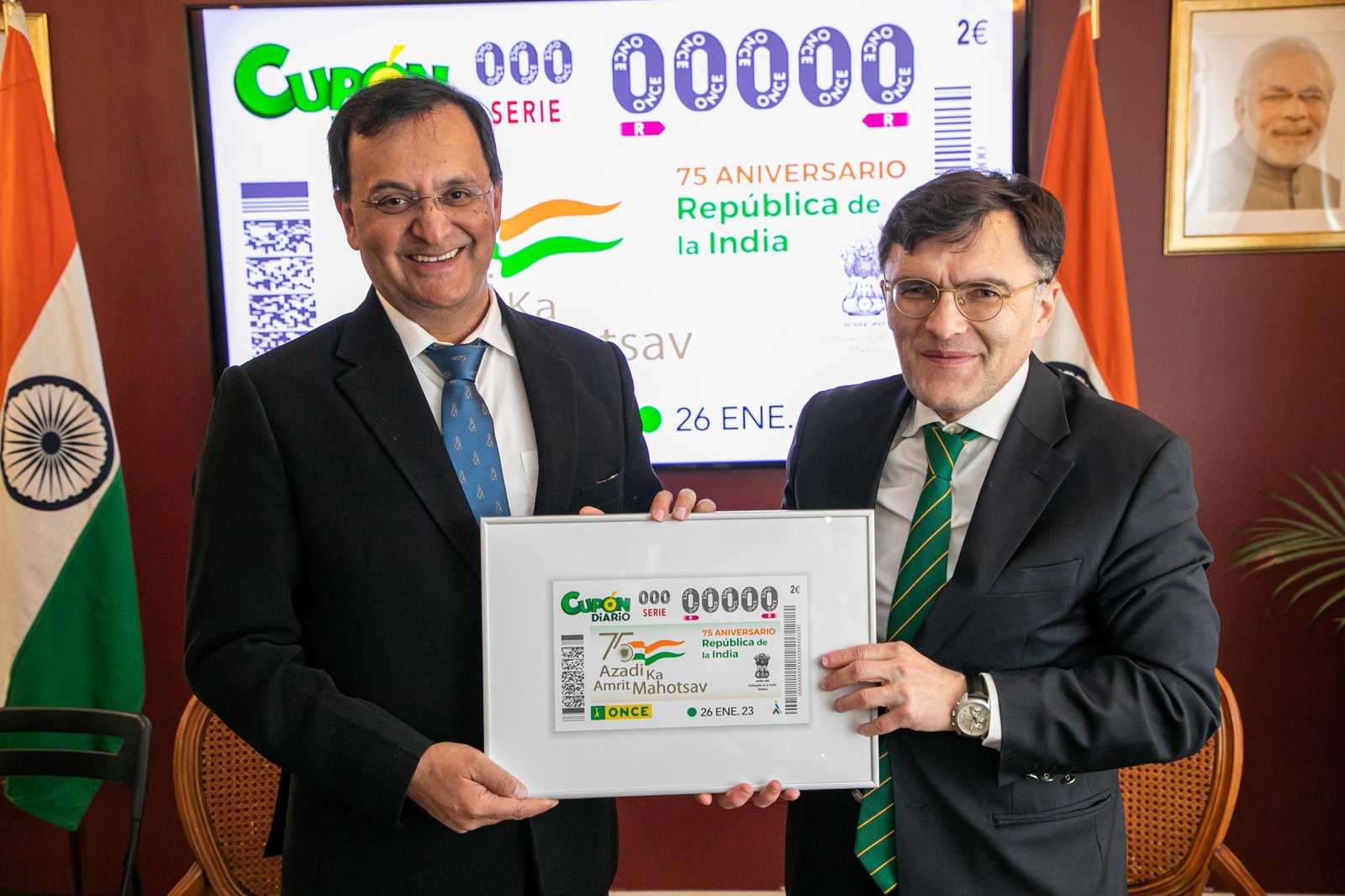 ONCE, a Spanish org working for the welfare of differently-abled persons, launched a commemorative coupon in honor of 75 years of Indian independence.