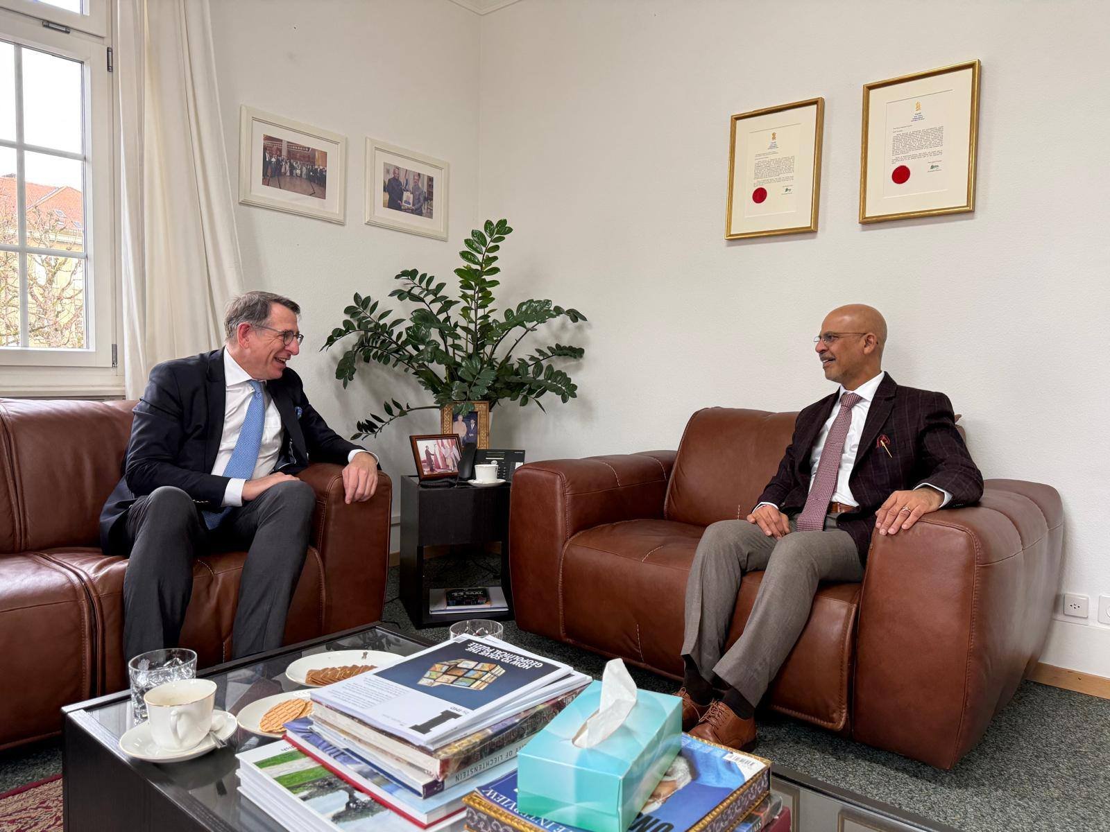Ambassador Kumar was pleased to receive Dr. Frank-Jürgen Richter, Founder & Chairman of Horasis, at the Embassy of India in Switzerland & Liechtenstein today. Their discussions focused on strengthening institutional engagement and exploring avenues for collaboration through jointly hosted forums, business dialogues and knowledge-exchange platforms.