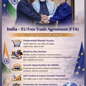 This landmark agreement is expected to boost trade and investment, strengthen supply chains, create new opportunities for businesses and MSMEs, and enhance innovation and sustainability across sectors. By deepening economic cooperation, the India–EU FTA will not only benefit millions of people on both sides but also play a vital role in shaping the evolving architecture of global trade.