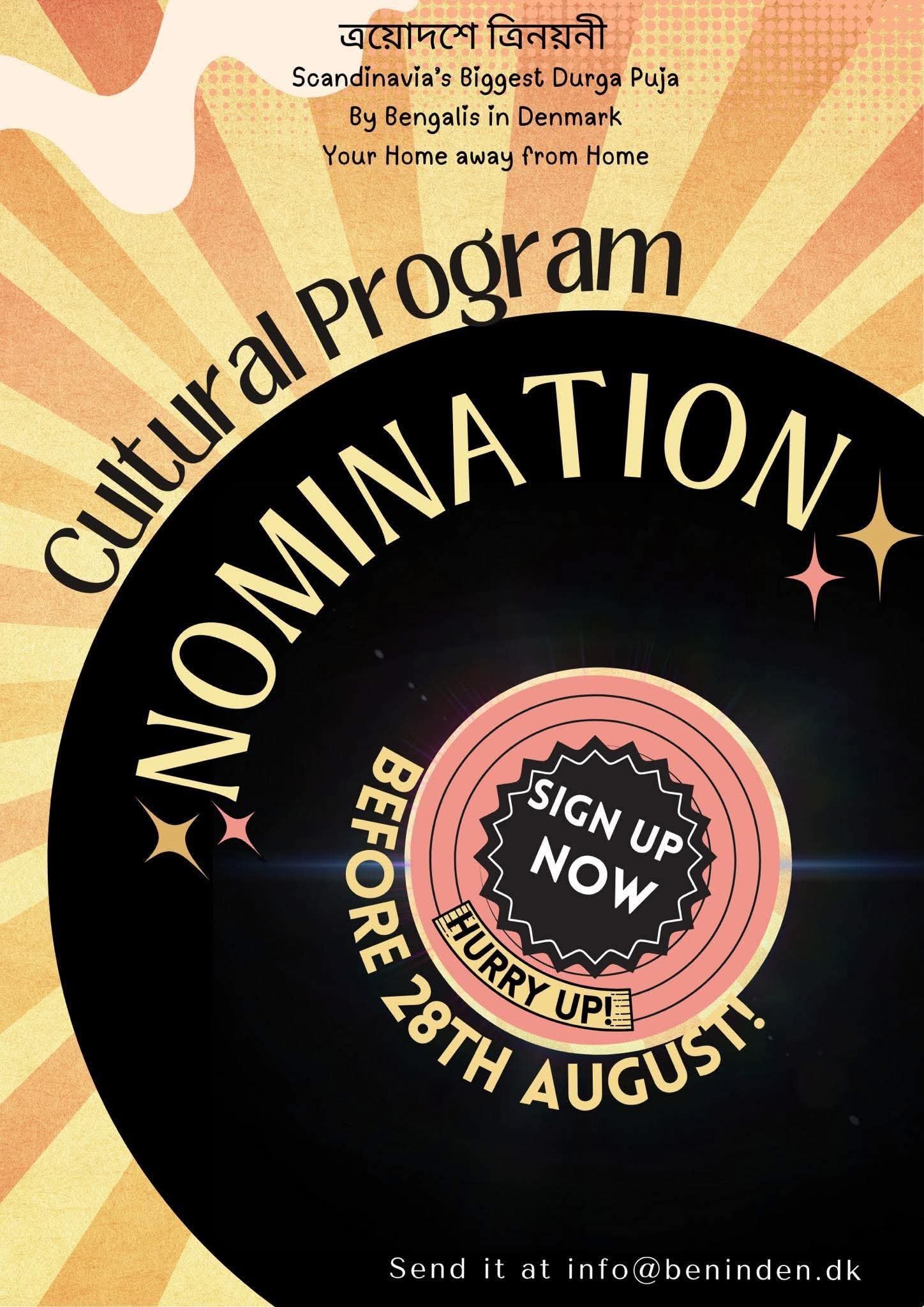 Bengalis in Denmark ‘Cultural Performances’ at Durga Puja โ€“ Register Now! Send Nominations before 28th August, 2025.