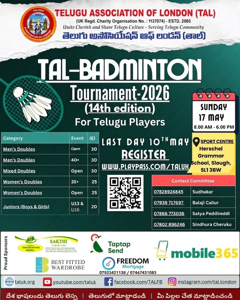 Telugu Association of London Presents TAL Badminton Tournament 2026