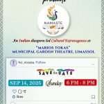High Commission of India Presents ‘Namaste Cyprus 2025’ on 14th September at Marios Tokas Municipal Garden Theatre, Limassol.