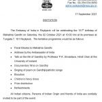 embassy of india Reykjavik will be celebrating the 151st birthday of Mahatma Gandhi on 02 oct at Tungata