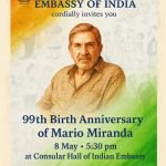 EOI Portugal cordially invites you to 99th Birth Anniversary of Marino Miranda On 8th May at Consular Hall Of Indian Embassy.