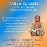 Embassy of India HAGUE presents TABLA CLASSES For all age groups Starting January 21, 2022