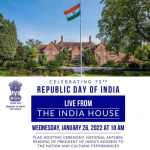 celebrations of the 73rd Republic Day of India live from India House on Wednesday, January 26 2022