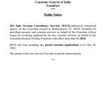 Indo German Consultancy Services accepting applications for consular servicesbehalf of Consulate General India, Frankfurt with effect from 01.01.2025.