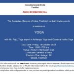 Consulate General of India Frankfurt invites you to the next session of Yoga on 14th Oct 2022