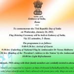 on the occassion of 73rd Republic Day of India lag Hoisting Ceremony will be held at Embassy of India Rome