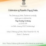 The Embassy of India, Bucharest cordially invites you to celebrate the Flag Hoisting Ceremony on 26th jan 2022