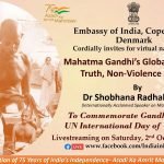 EOI Copenhagen Cordially invites for Virtual Narration on Mahatma Gandhi’s Global pursuit of Truth Nonviolence & Peace on 2nd Oct