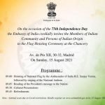 on the Occasion of 75th Independence Embassy of india olso Invites For the Flag Hoisting Ceremony