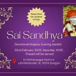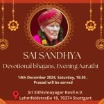 Shridi Sai Stuttgart Team Warmly invites everyone to join the Sai Sandhya Bhajan on December 14th.
