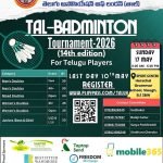 TAL Badminton Tournament 2026 – 14th Edition by Telugu Association of London on 17th May, 2026. Register Now!