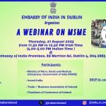 Embassy of India, Dublin Organises ‘A Webinar on MSME’ at Embassy Premises on 21st August. Interested Individuals are Requested to RSVP to com1.dublin@mea.gov.in