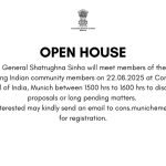 Open House with Consul General Shatrughna Sinha – Invitation for Public Interaction in Munich on 22nd August.