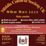 Experience the Colors of Mithila Milan 2025 Presented Cultural Society UK on 23rd – 24th August at Wraysbury Village Hall, London.