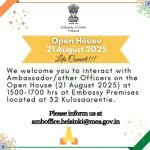 Embassy of India Finland Invites To Open House on 21st August at Embassy Premises, Helsinki.