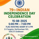 Join the 79th Indian Independence Day Celebration in Eindhoven on 15th August at S V Tongelre.