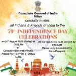 Join Consulate General of India, Milan 79th Independence Day Celebrations on 15th August at CGI Milan.