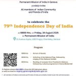 PMI in Geneva Invites Indian Community to Join The Celebrations of 79th Independence Day of India on 15th August.