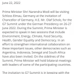 Narendra Modi will visit Germany to attend the G7 Summit at Schloss Elma