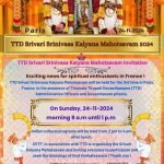 Sri Venkateswara Temple France Warmly Invites For Srivari Srinivasa Kalyana Mahotsavam held on November 24, 2024 at Paris.
