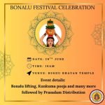Join the Bonalu Festival Celebration on 29th June at Hindu Bhavan Temple.
