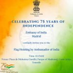 flag hoisting by Amb Dinesh Patnaik at the Plaza de Mahatma Gandhi