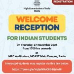 High Commission of India Hosts Student Welcome Reception in Malta