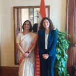 Amb Dr Neena Malhotra was pleased to receive Ms Liliana Galiani Deputy Commissioner Head of Police Office of Castro Pretorio at her office Matters pertaining to security were discussed