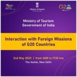 Ministry of Tourism Government of India is set to host a special interaction of the G20 Tourism Working Group with Foreign Missions of G20 Members and Invited countries on May 2nd 2023 at New Delhi
