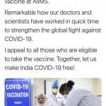 India Prime Minister Narendra Modi has been administered first dose of Bharat Biotech’s Covaxin