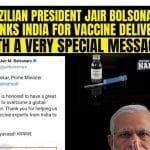Brazilian President Jair Bolsonaro has thanked India for supplying Covid-19 vaccines