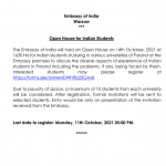 Embassy of India Warsaw invites Students For ”Open House for Indian Students ” on 14th Oct 2021 Do Register Now