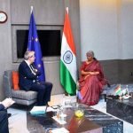 Union Finance Minister Smt. nsitharaman meets Mr PaoloGentiloni Commissioner European Union ecfin ahead of the G20 FMCBG meeting in Bengaluru