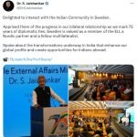 A special event was organised in Stockholm on Sunday 14 May where Hon. External Affairs Minister Dr. S. Jaishankar interacted with members of Indian diaspora Members of Indian community