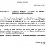 Embassy of India Brussels will be Conducting an Open House in Consular Wing on 7th January 2022