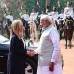 PM Narendra Modi receives PM Giorgia Meloni of Italy in a ceremonial welcome at the forecourt of Rashtrapati Bhavan