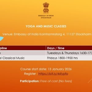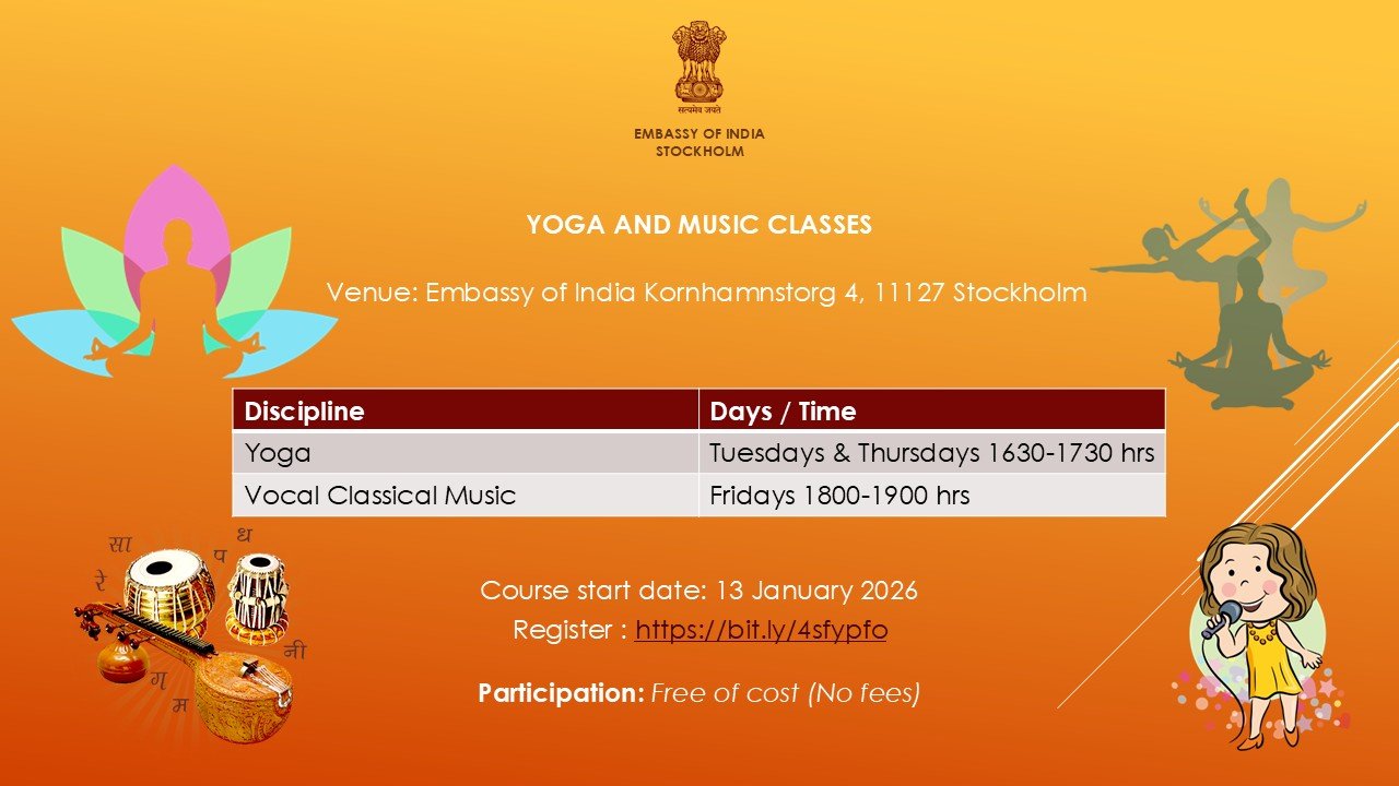 📍 Venue: Embassy of India, Kornhamnstorg 4, 111 27 Stockholm