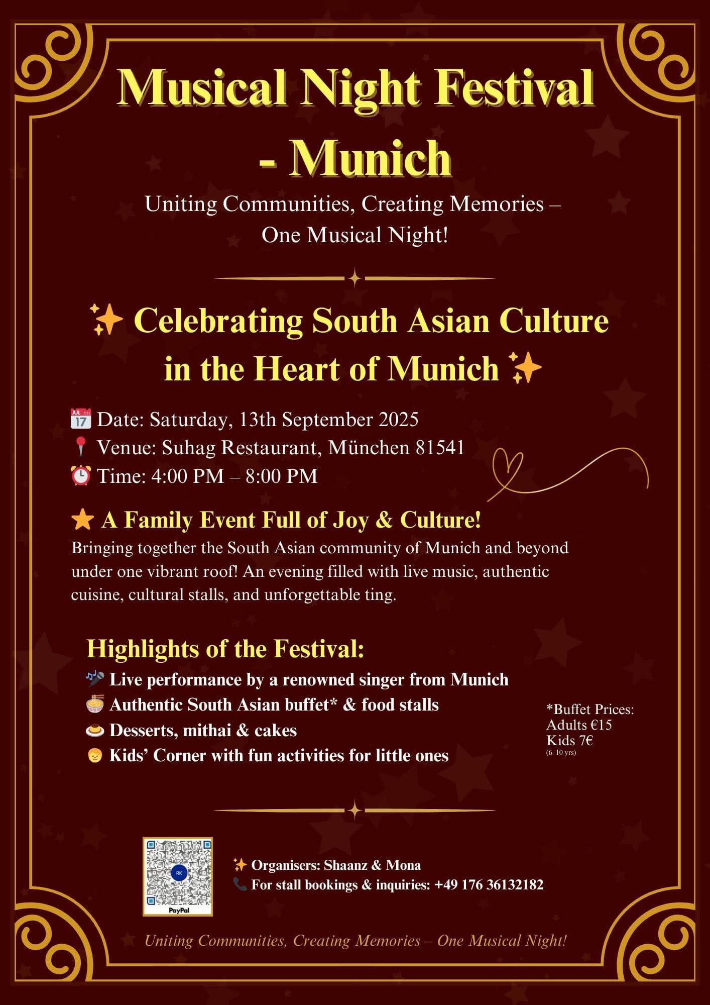 📞 Stall bookings & inquiries: +49 176 36132182