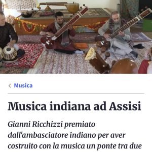Ricchizzi lives in Assisi, where he founded Saraswati House, the only Indian music centre in Italy, named in honour of the Hindu goddess Saraswati — the divine source of wisdom, learning and the arts. musicaindiana.it+1 Over his more than 50-year career, he has studied deeply in India — earning a Master’s in Sitar and Indian music from the Benares Hindu University under luminaries like Ustad Kursid Ali Khan and Professor Ritwik Sanyal.