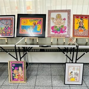The exhibition brought together talented Indian artists who showcased a vibrant array of traditional and modern Indian art forms, including Madhubani, Mithila, Kalamkari, Warli, and Contemporary Art.