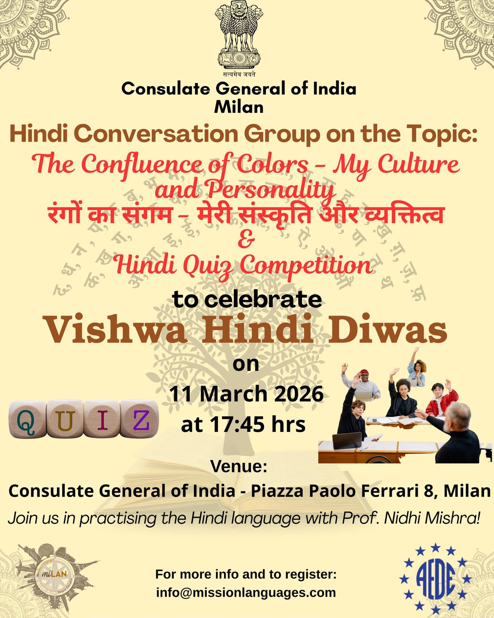 The CGI in Milan invites you to a special Hindi Conversation Group and Hindi Quiz Competition on the theme