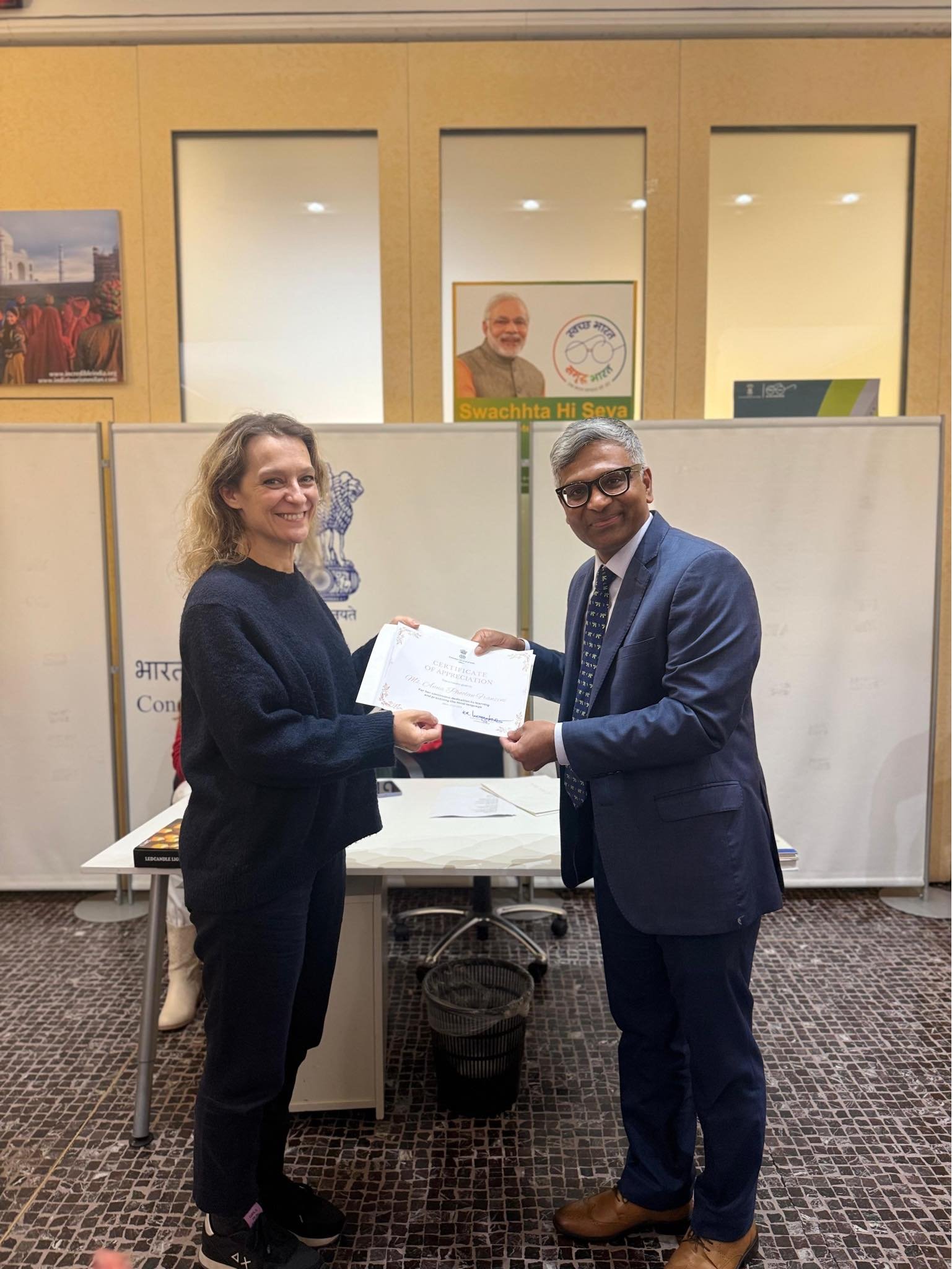 Consul General Lavanya Kumar presented Certificates of Appreciation to enthusiastic #Hindi language learners at the Indian Consulate in Milan on 17 December 2025.