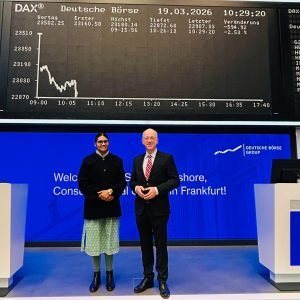 Consul General Shuchita Kishore visited Deutsche Börse and its historic trading floor at the heart of Frankfurt’s financial center on 19 March 2026.