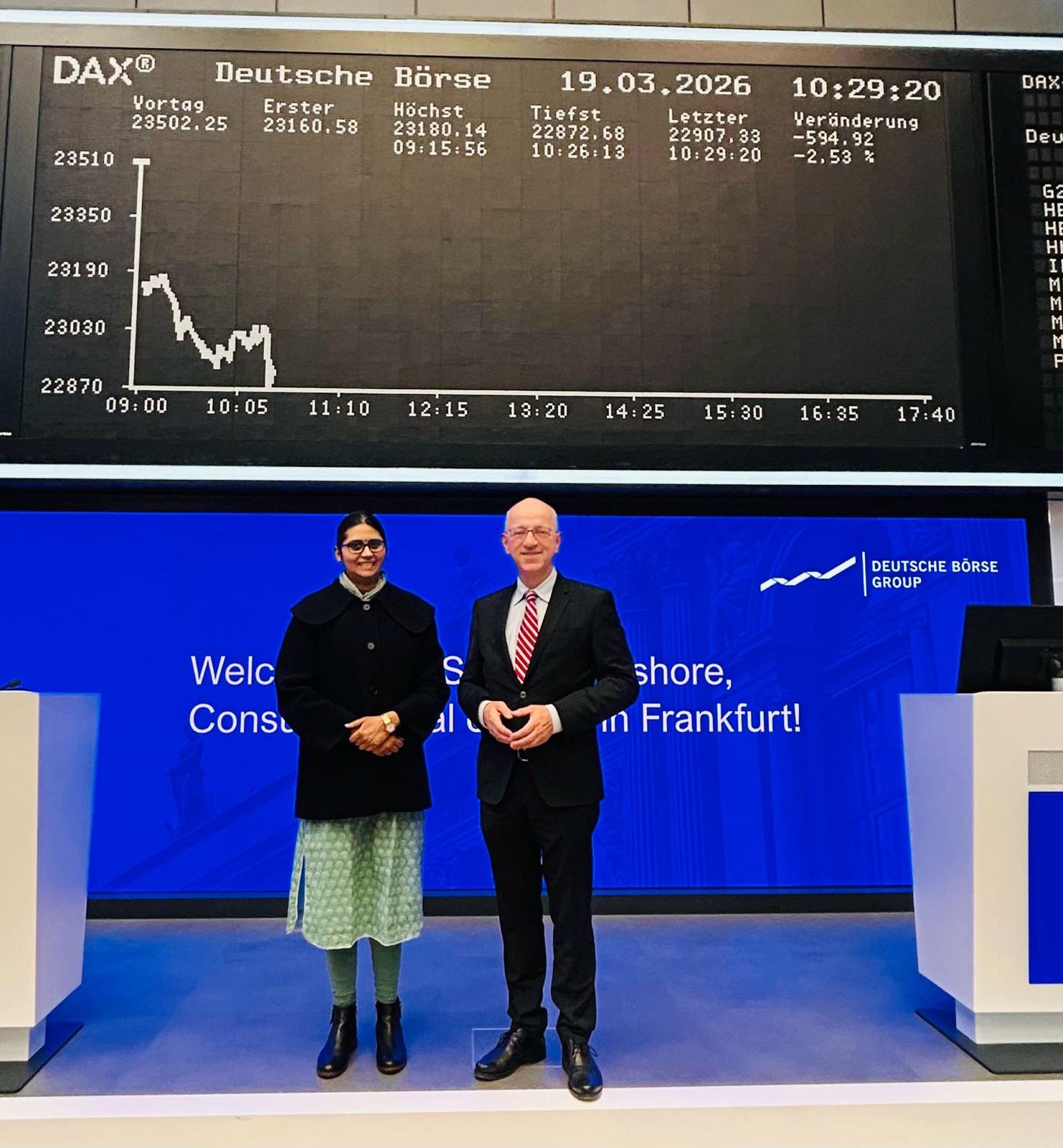 Consul General Shuchita Kishore visited Deutsche Börse and its historic trading floor at the heart of Frankfurt’s financial center on 19 March 2026.